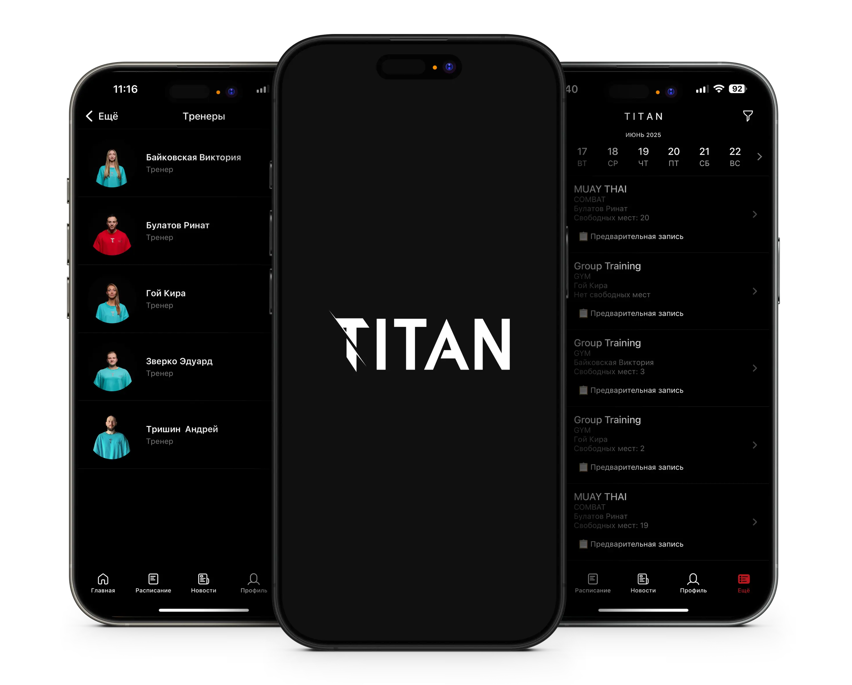Мобильное приложение TITAN SPORT CLUB, чтобы всегда иметь актуальное расписание под рукой. Узнать актуальную загрузку клуба в моменте, выбрать тренера, приобрести абонемент, записаться на тренировку или отменить занятие. Всё это вы можете сделать где и когда вам удобно!